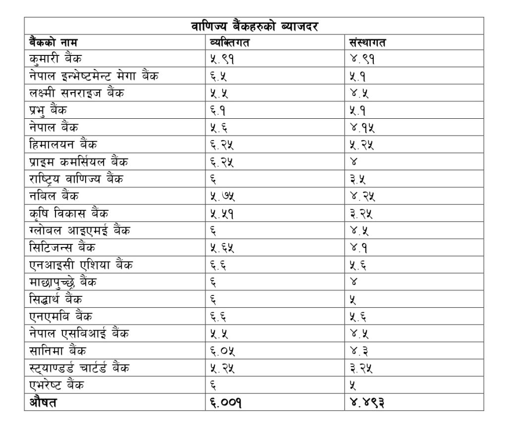 साधारण बचत खाताको ब्याजदर एकवर्षे संस्थागत र मुद्दती खाताको ब्याजदर हेर्दा सबै बैंकको माघको ब्याजदरलाई नै कायम गरेको देखिन्छ । लामो अवधिको ब्याजदरका लागि भने केही बैंकले ब्याजदर समायोजन गरेको देखिएको छ ।